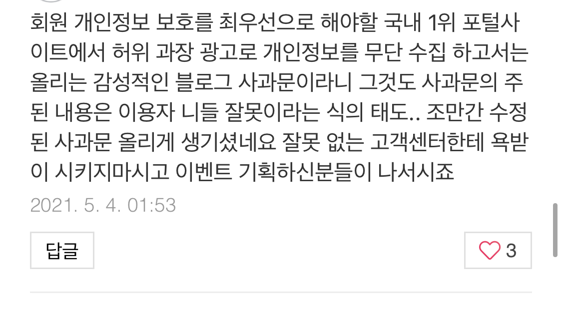 심지어 네이버 블로그 댓글창이 화가난 댓글로