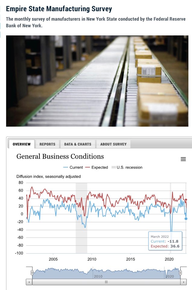 코로나로 인하여 엠파이어스테이트 제조업지수가 2022년 1월 2월 3월 제조업지수도 시장치를 크게 밑돌았으며 이것은 글로벌 금융위기인 2009년 이후에는 가장 아래 수치라고 합니다.