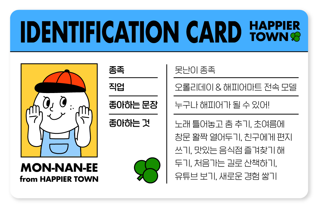 오롤리데이 해피어타운의 마스코트는 못난이입니다. 해피어타운의 세계관부터 살펴보겠습니다. 해피어타운의 시작은