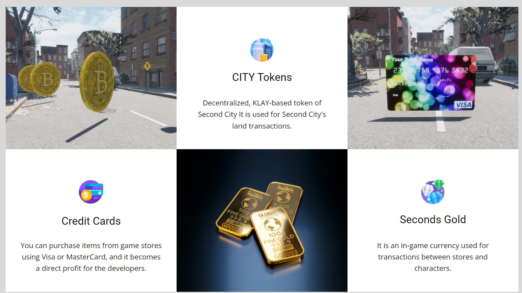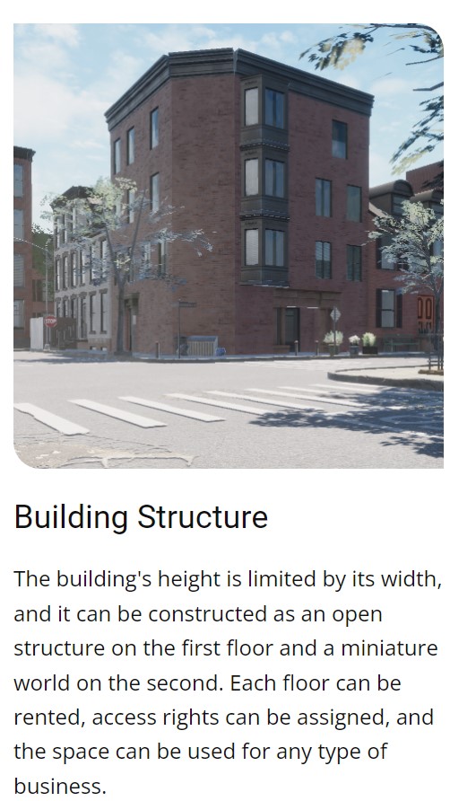 세컨드시티에는 일단 NFT 토지가 존재하고 현실세계의 건물주 처럼 건물도 얻을 수 있습니다. 시청시스템 지하철 및 공항 판타지 랜드까지 다양하게 구성되어있습니다. 특히 진짜 현실세계처럼 구성되어 있을 뿐 아니라 현실 세계와 가상세계를 허문다는 점이 굉장히 돋보이는 점입니다.