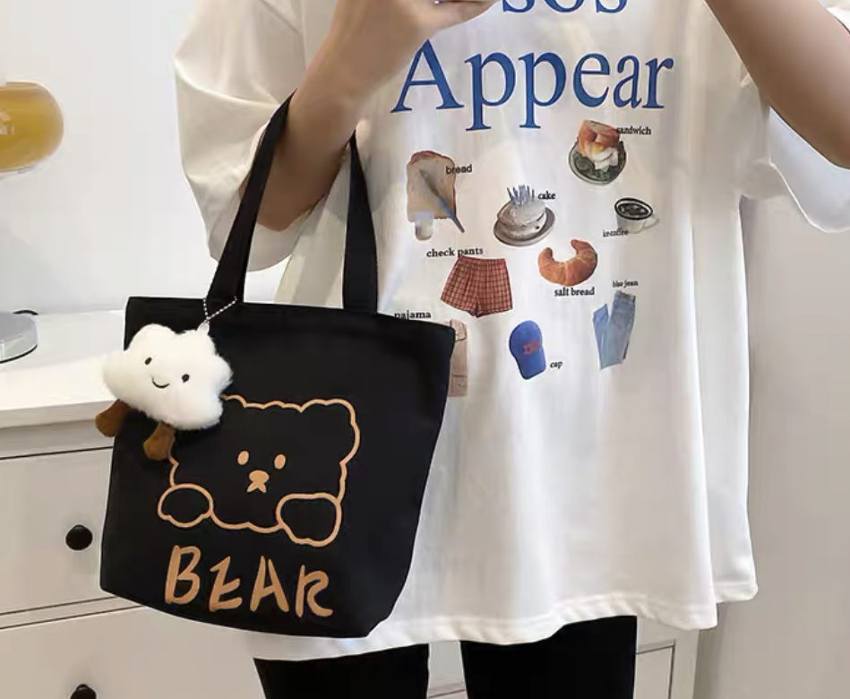 반면 캐릭터 상품 가볍게 들 수 있는 천가방 디자인이 눈에 들어왔다 귀여운 가방 디자인 이었다