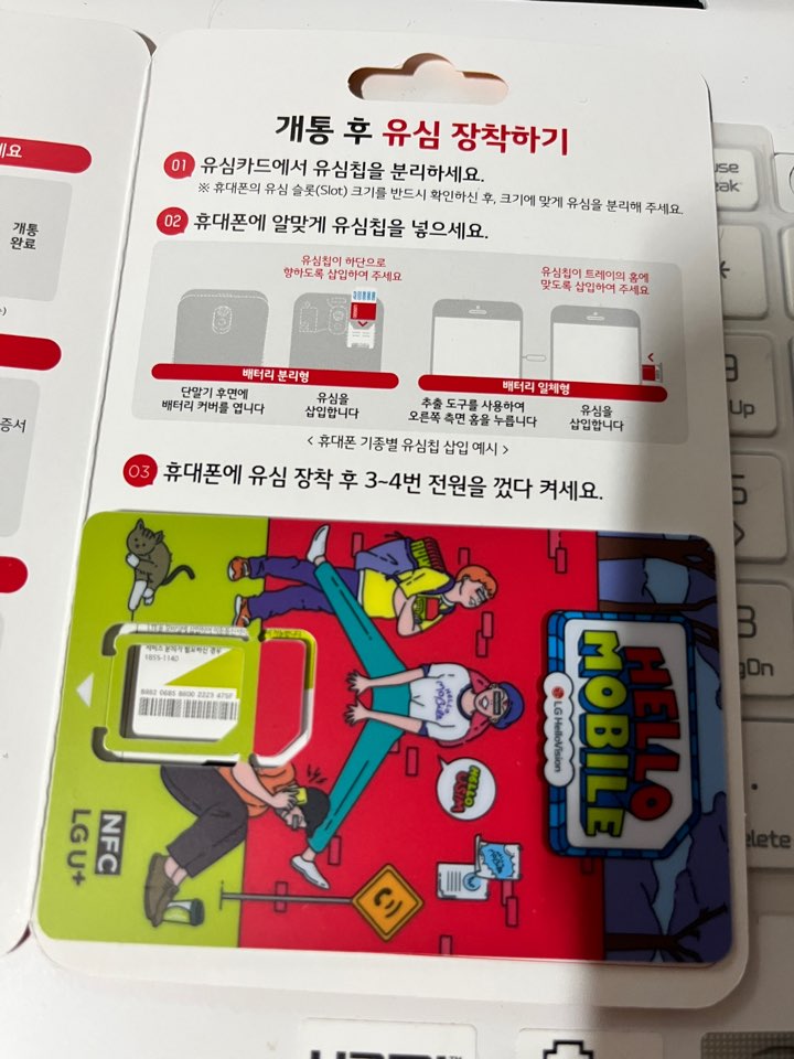 한마디로 편의점 내에서는 여러 통신사의 유심을 판매하고 있다. 여기서 살펴보는데 편의점 점주나 알바도 어떤 유심을 본인이 판매하고 있는지 잘 모른다. 그저 유심을 판매하고 있다 정도만 알고있는듯했다. 나도 처음에는 뭐가 뭔지 잘 몰랐기 때문에 보이는대로 LG U+망 LG HelloVision 유심을 구매해서 돌아왔다.