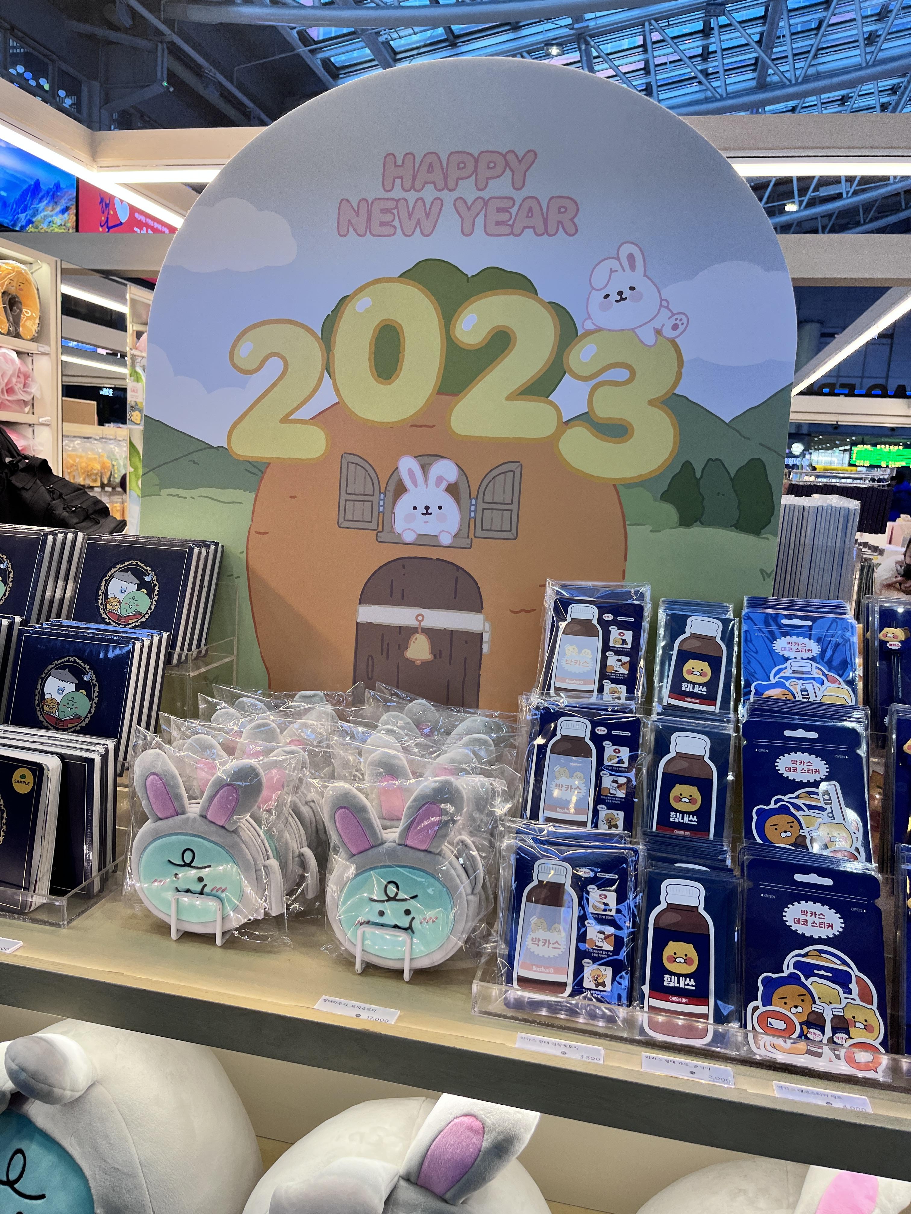 카카오프랜즈샵 피규어 브릭피규어 가습기 보조배터리 최고심 스탬프 등 여러가지 열일하는 카카오 시리즈 2023년은 토끼해라 메인은 토끼들로 장식되어 있다.
