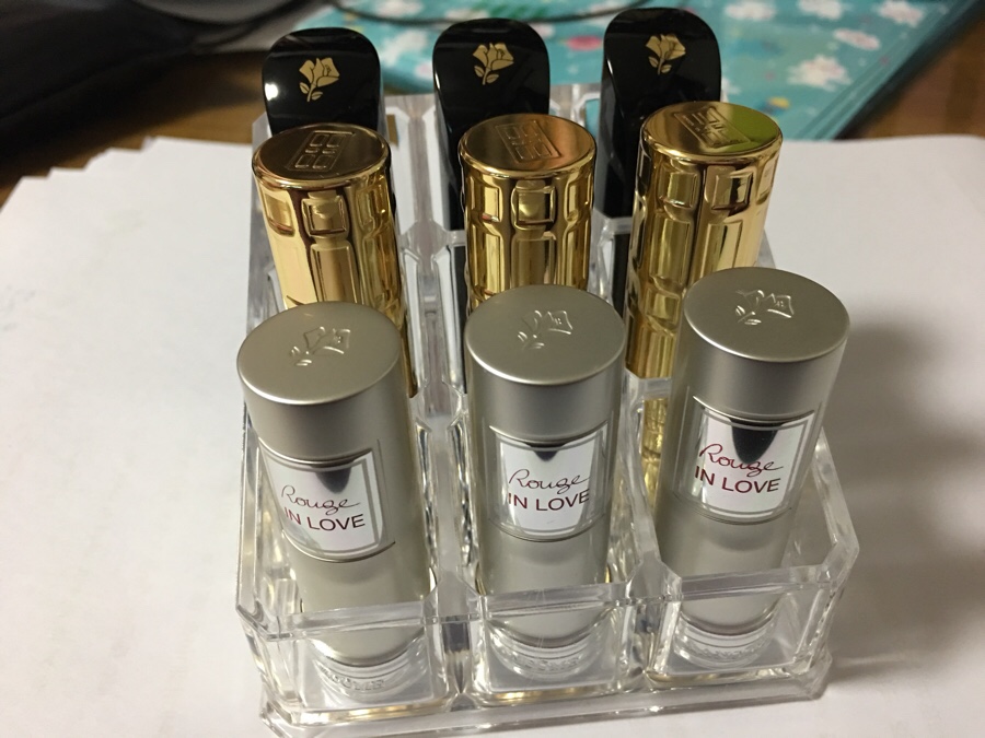 사실 여러가지 종류가 있었지만 제가 고른건 바로 9구짜리 립스틱 케이스입니다. 립스틱 개수가 사실 9*3 =27개가 넘을 정도로 여러가지 꺼내놨다는 사실을 깨달았습니다. 이 참에 느낀점은 참 인생에 있어서 불필요한 행동도 많이 하고, 불필요한 소비도 정말 많이 하는구나? 이런점이 느껴졌습니다. 고작 화장대 하나 정리하면서 말이죠.
