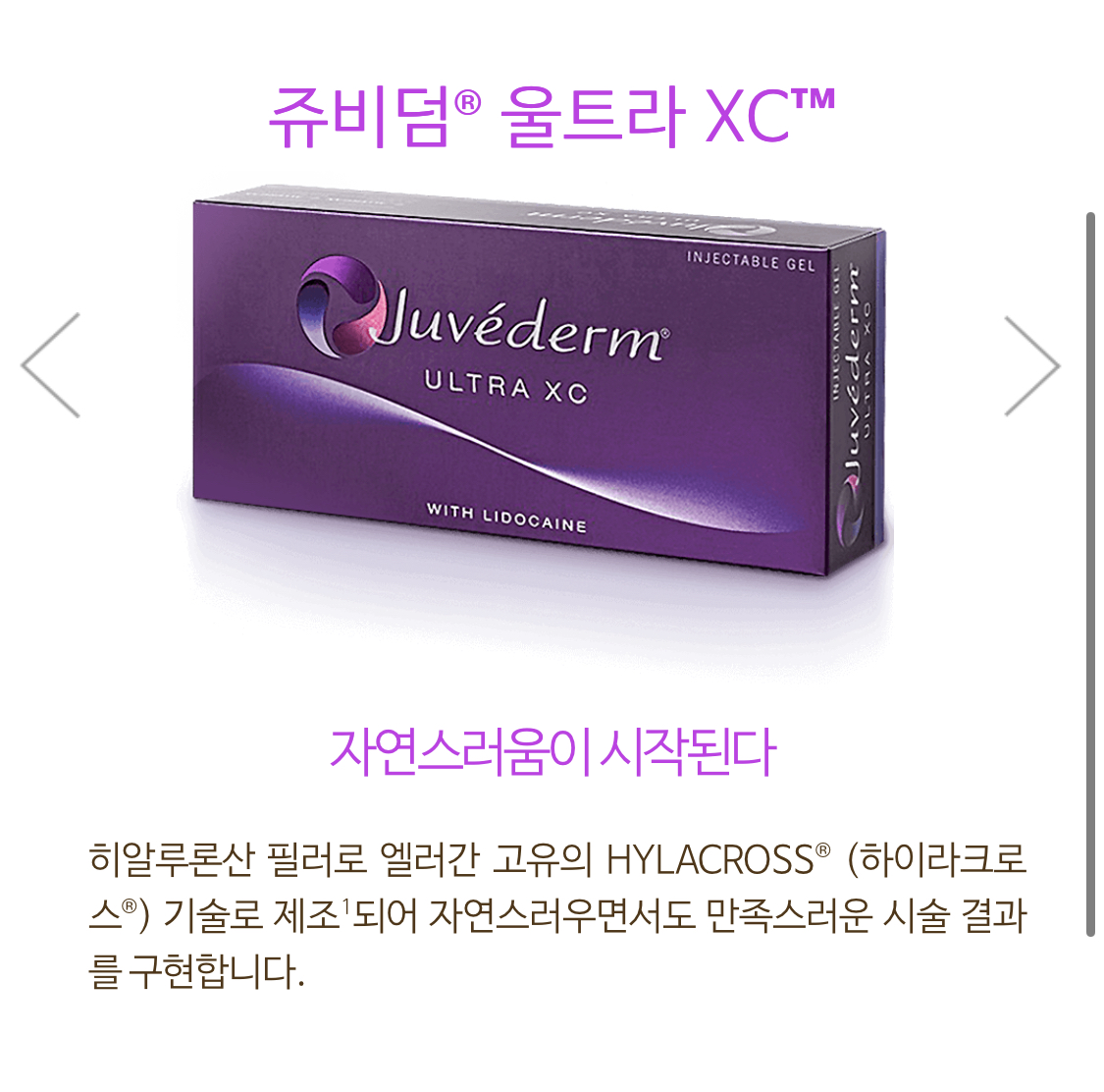 수입필러를 대표한다면 제생각에는 쥬비덤이 바로 떠오릅니다. 쥬비덤 알고계신가요? 쥬비덤 필러는 수입필러로 세계시장 점유율 2013년 1위를 기록했다고 합니다. 시술 효과가 오랫동안 유지되는편이고 시술 후 결과가 자연스러운편입니다. 일시적으로 안면부 주름개선, 볼륨회복, 입술확대 등에 허가받은 제품입니다. 쥬비덤 볼루마 볼리프트 볼벨라 with 리도카인 등이 있습니다. 입꼬리 주름 안좋은 피부상태 깊은 팔자주름 볼륨이 꺼저 늘어져 보이는 턱라인 볼륨이 꺼져보이는 볼 등에 활용할 수 있습니다. 쥬비덤 필러의 경우 가장 대표적으로 쓰이는 잘 알려진 필러로 가격대가 높은편이고 그만큼 유지면에서나 자연스러운면에서 만족도가 높은 필러입니다.